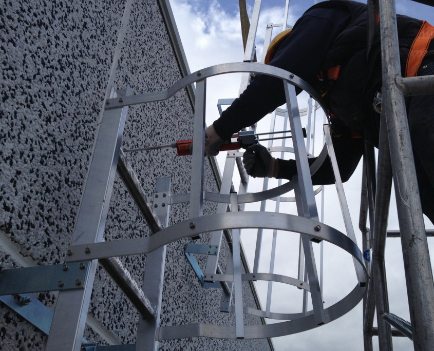 Montaggio scala fissa con gabbia per accesso in copertura.